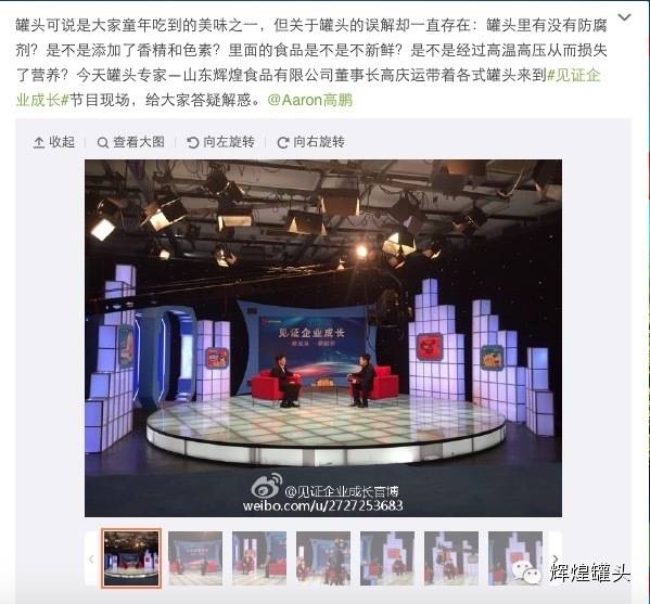 20141223日山東輝煌食品有限公司董事長高慶運(yùn)先生,作為罐頭行業(yè)的專家, 應(yīng)邀參加CCTV“見證企業(yè)成長”欄目,為消費(fèi)者解讀罐頭